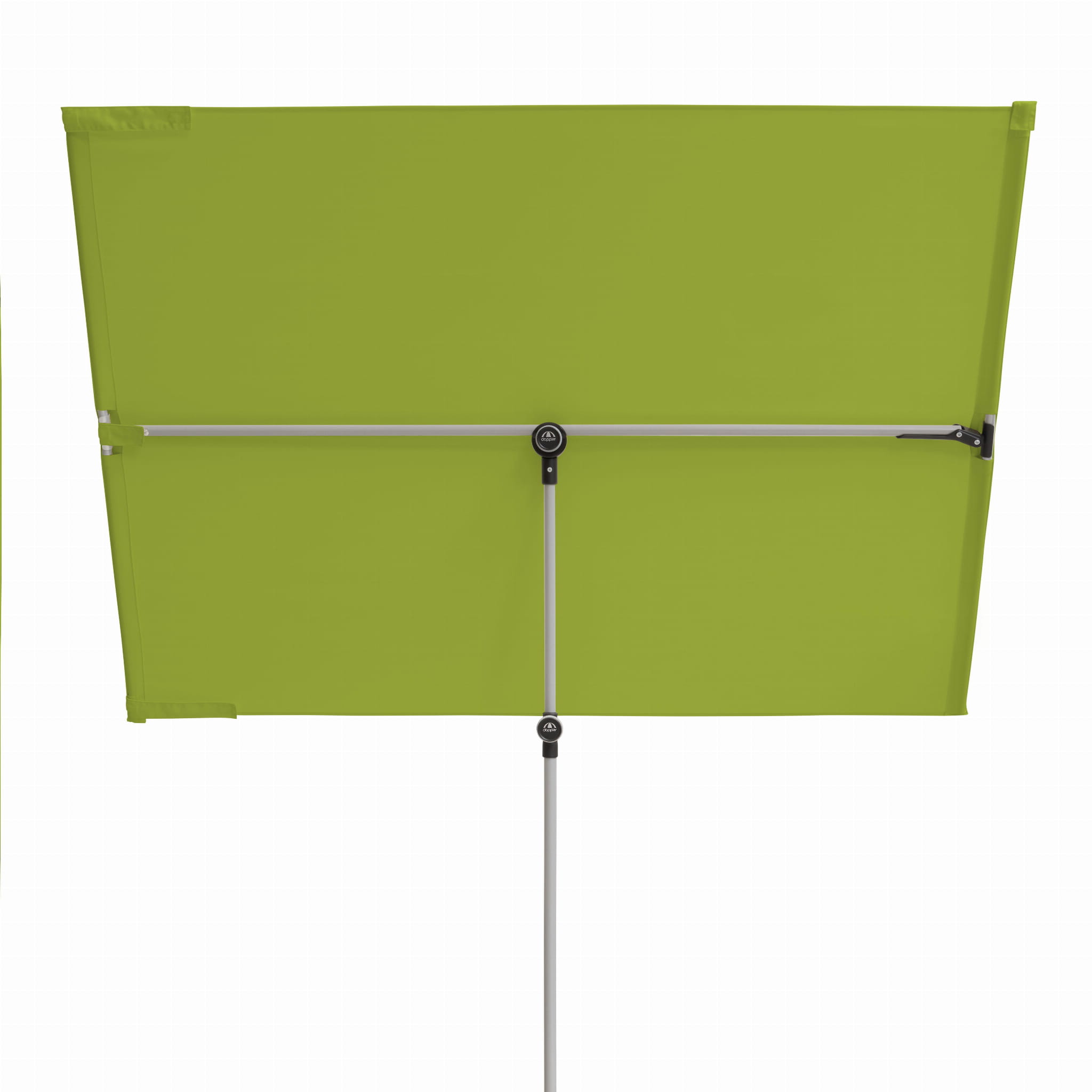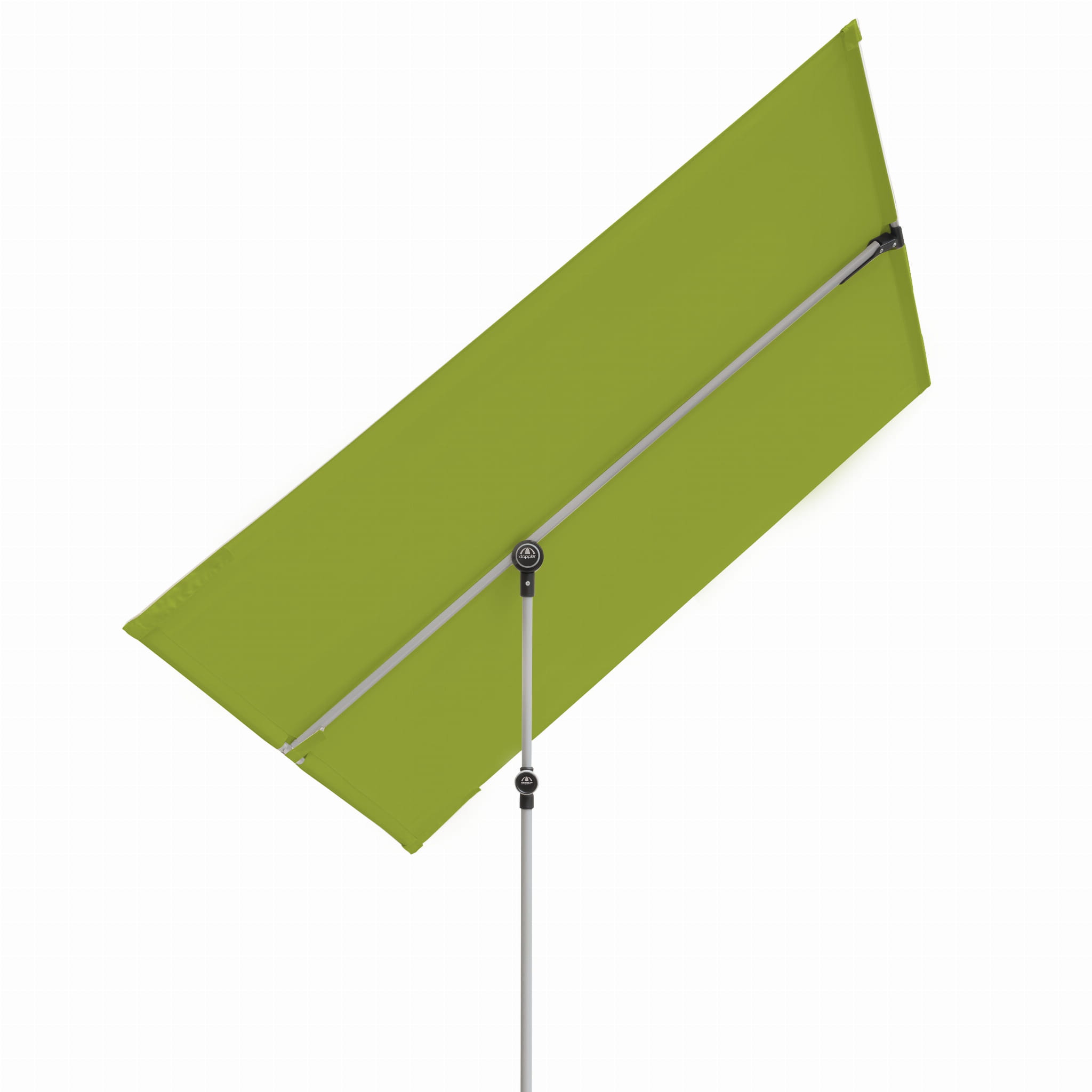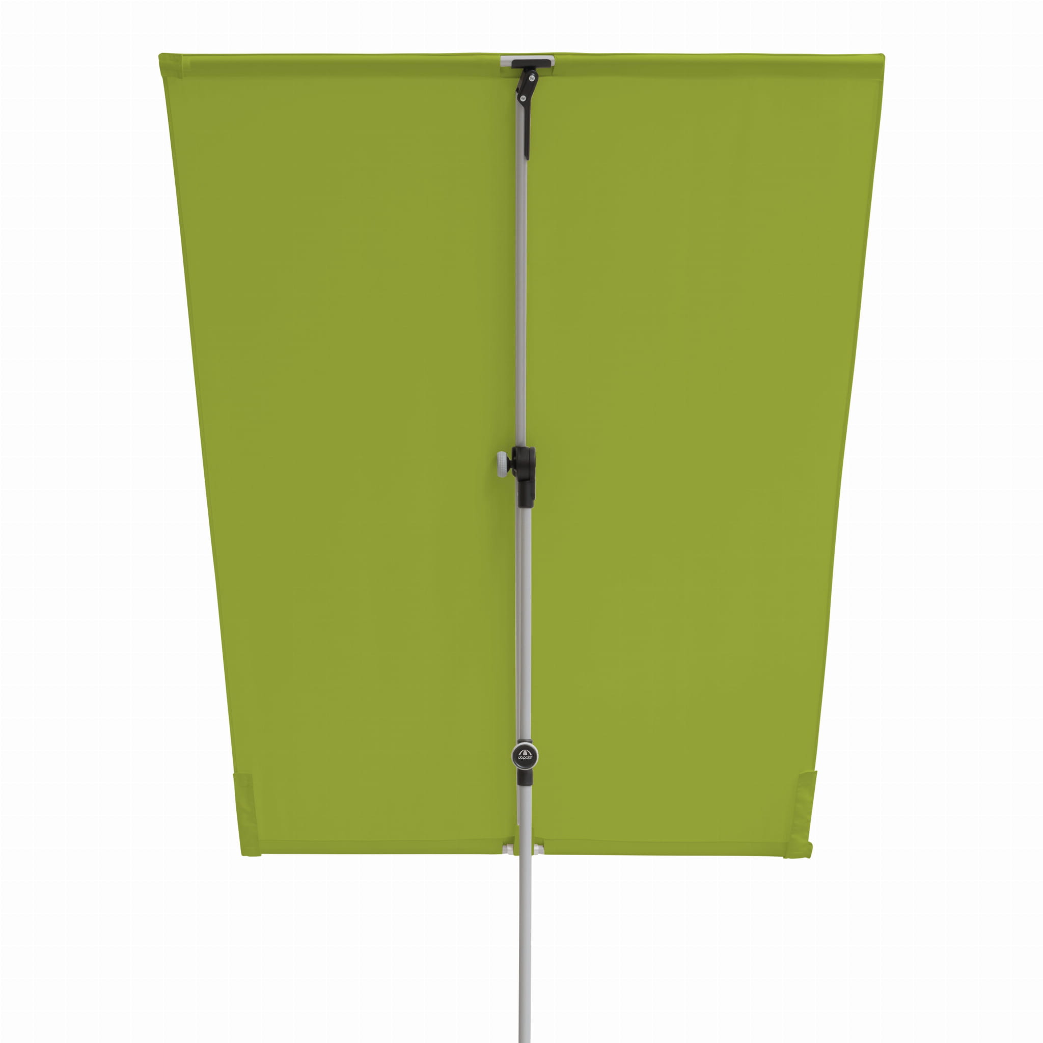 Materiał ekranu wykonany jest z wysokiej jakości poliestru o gramaturze 180, który jest odporny na różne warunki atmosferyczne oraz blaknięcie. Dodatkowo poszycie można zdjąć i wyprać ręcznie w maksymalnie 40 stopniach. Prostokątny kształt daszku o długości 180 cm i szerokości 130 cm ułatwia ustawienie parasola na ograniczonej przestrzeni, takiej jak balkon, a przy tym bardzo ładnie się prezentuje i pasuje do nowoczesnego budownictwa
