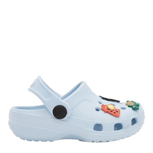 Jednym z wyróżników tych klapków są kolorowe przypinki, które przedstawiają m.in. pizzę, zwierzątka i inne dziecięce motywy. Dekoracje można łatwo zdjąć lub wymienić, co daje możliwość personalizacji obuwia i sprawia, że każde dziecko może wyrazić siebie poprzez swój styl.