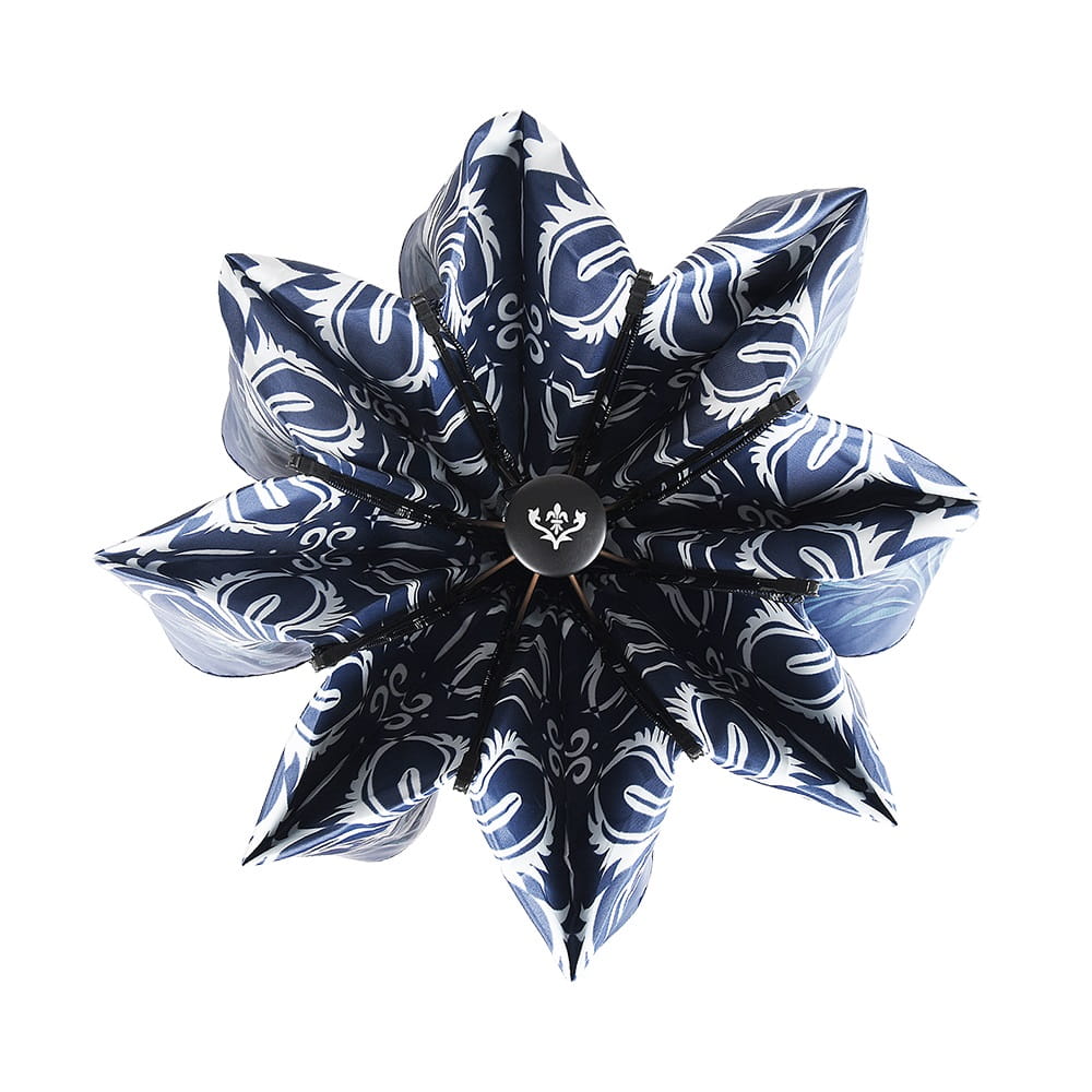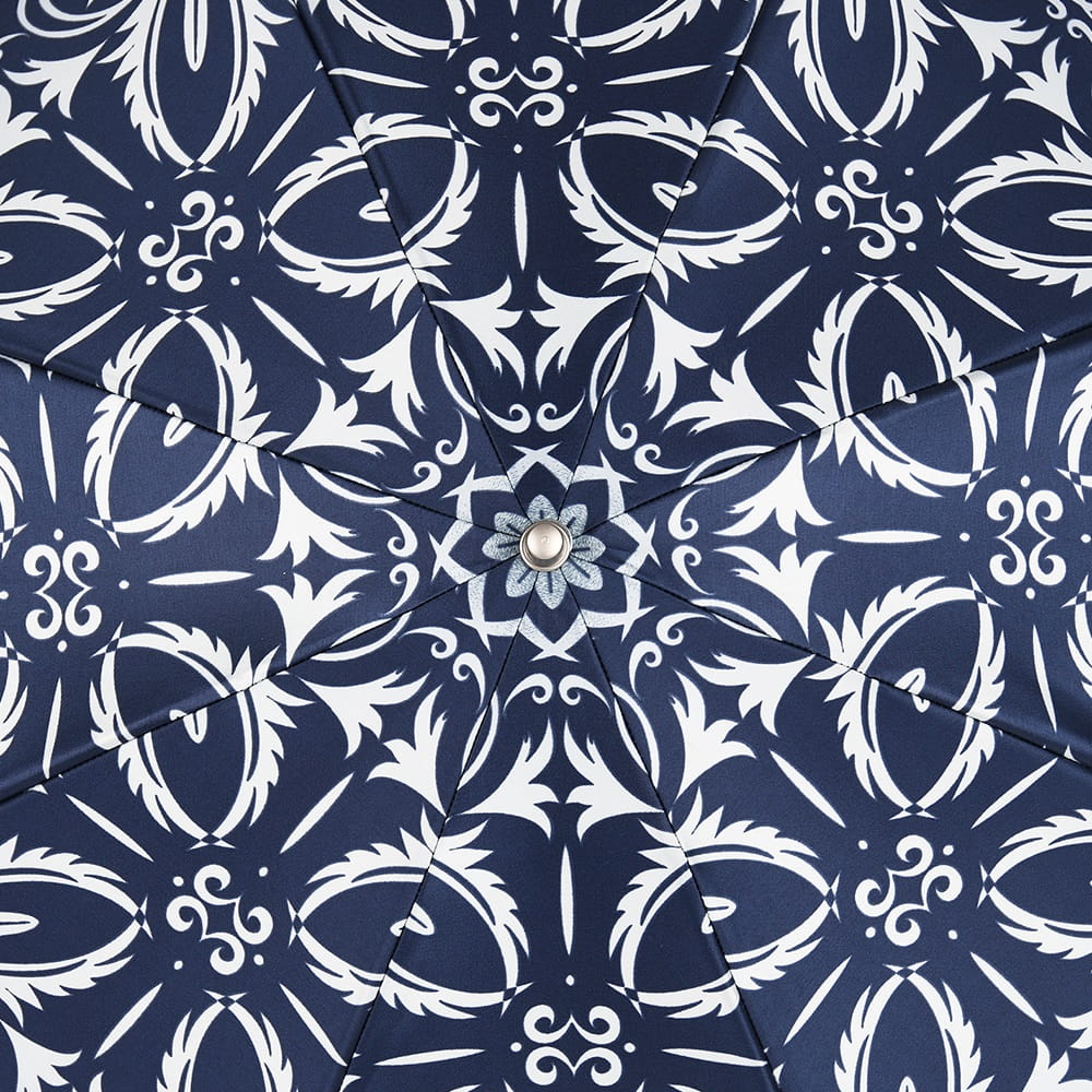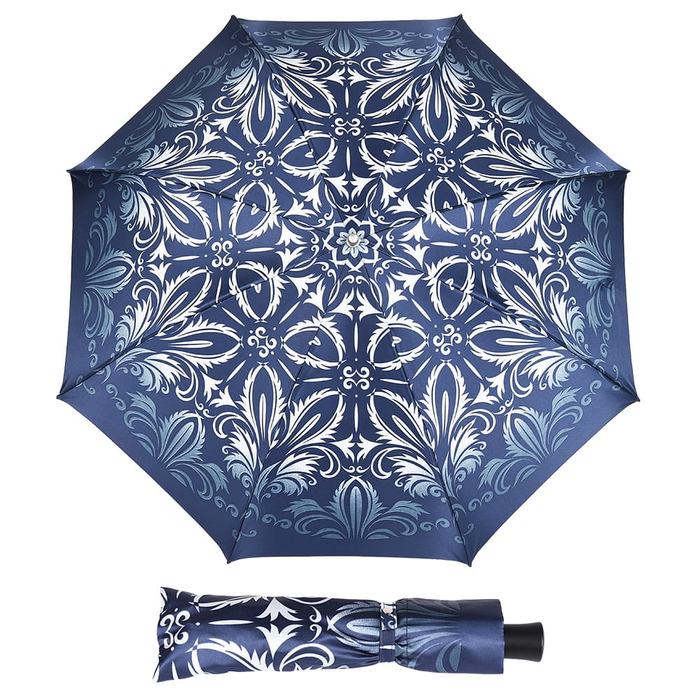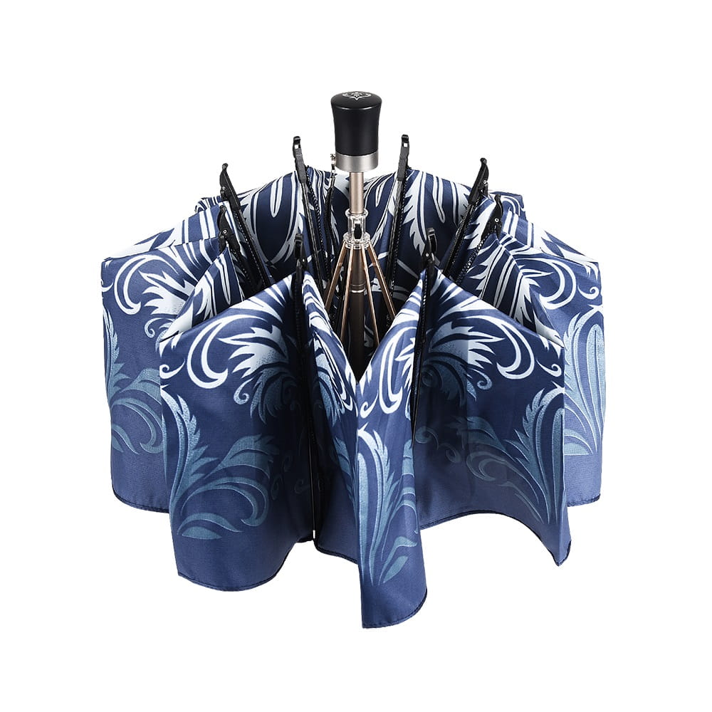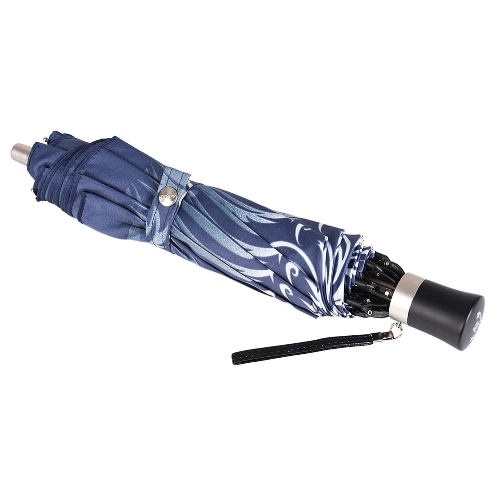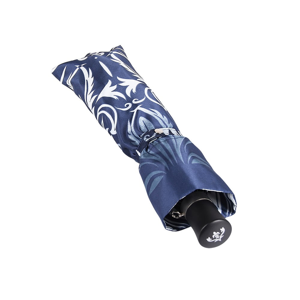 To, co wyróżnia ten model na tle standardowych parasolek, to unikalna konstrukcja stelaża i sposób składania czaszy. Parasol nie "gniecie się" w małą kulkę, lecz składa się precyzyjnie w połowie, zachowując smukłą, elegancką linię. Długość po złożeniu wynosi 34 cm – to idealny kompromis między kompaktowością a solidnością długiego parasola. Dzięki temu model ten jest niezwykle poręczny i bez trudu zmieści się w większości damskich torebek, nie tracąc przy tym fasonu.