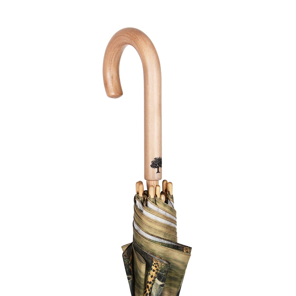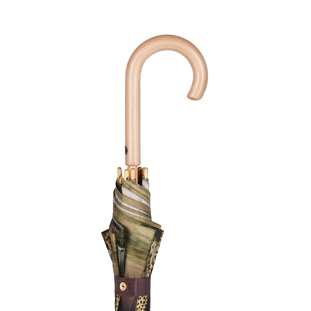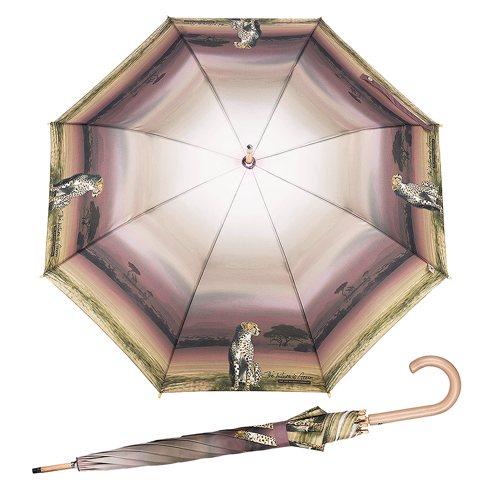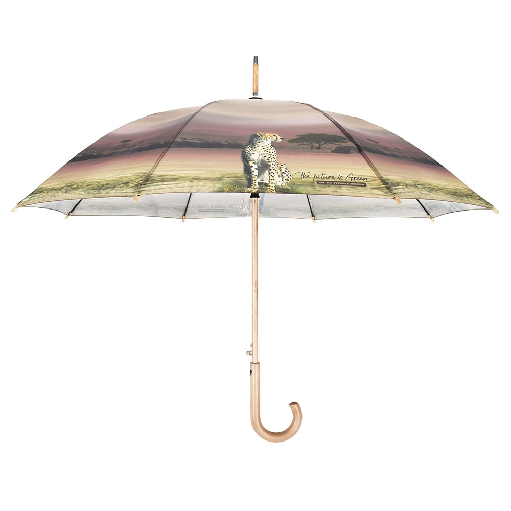 Parasol Perletti Green - Tkanina RPET, z której produkuje się parasole z linii Green jest pozyskiwana z plastikowych butelek pochodzących z recyklingu. Przycisk zamykający i ergonomiczny uchwyt wykonane są z biodegradowalnego drewna. Całość dopełnia drzewny grawer na rączce wykonany wraz z przyciemnianiem.