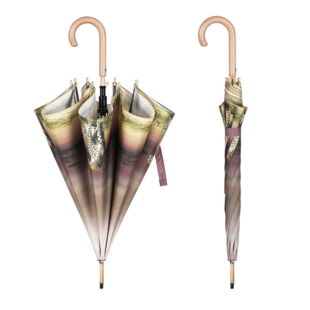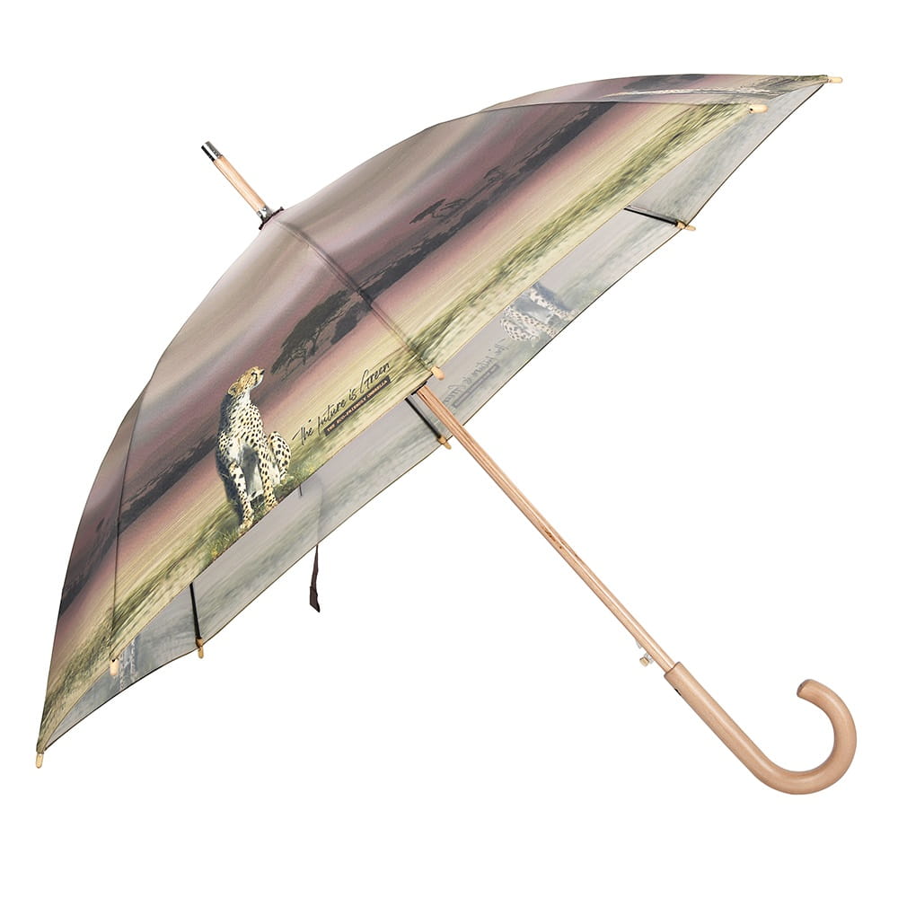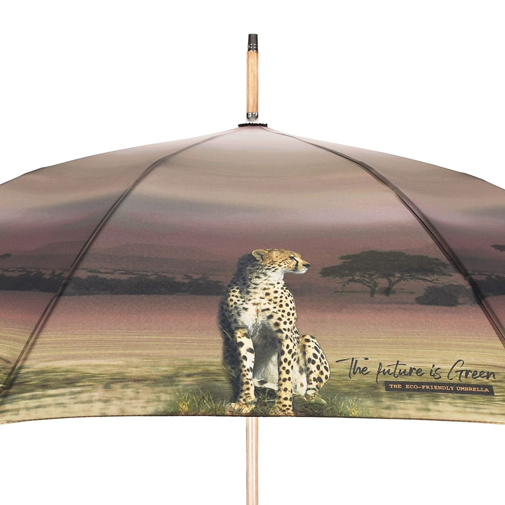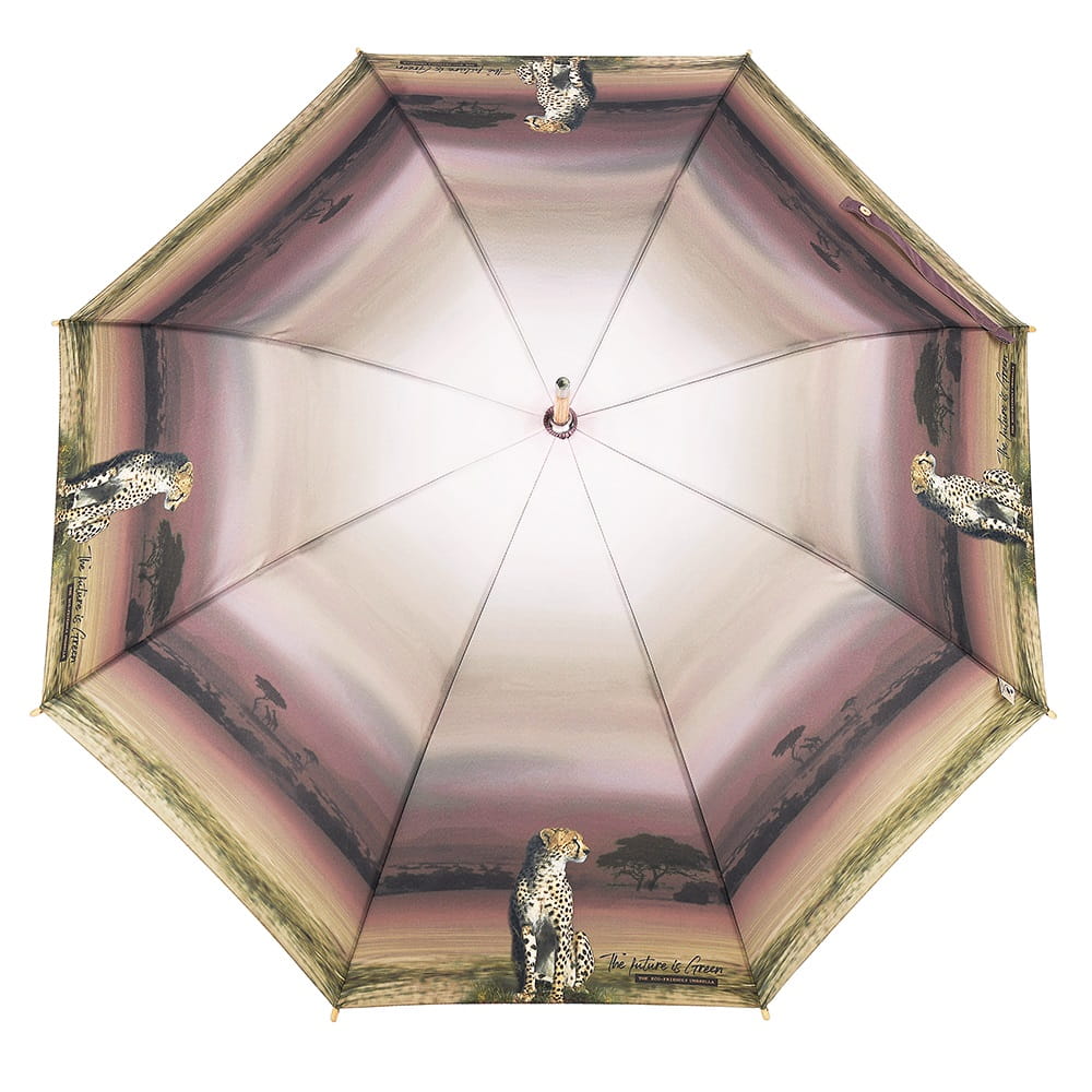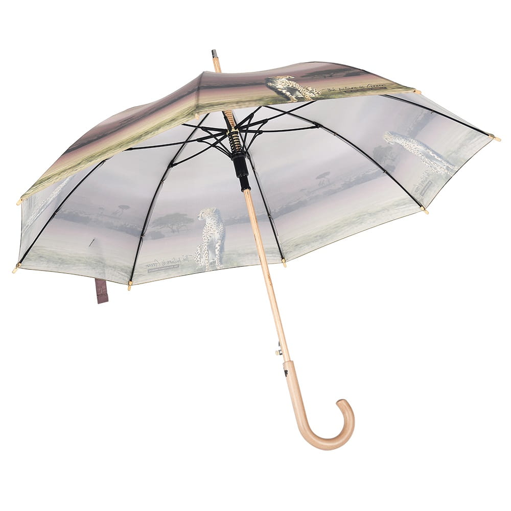 Parasol Perletti Green - Tkanina RPET, z której produkuje się parasole z linii Green jest pozyskiwana z plastikowych butelek pochodzących z recyklingu. Przycisk zamykający i ergonomiczny uchwyt wykonane są z biodegradowalnego drewna. Całość dopełnia drzewny grawer na rączce wykonany wraz z przyciemnianiem.
