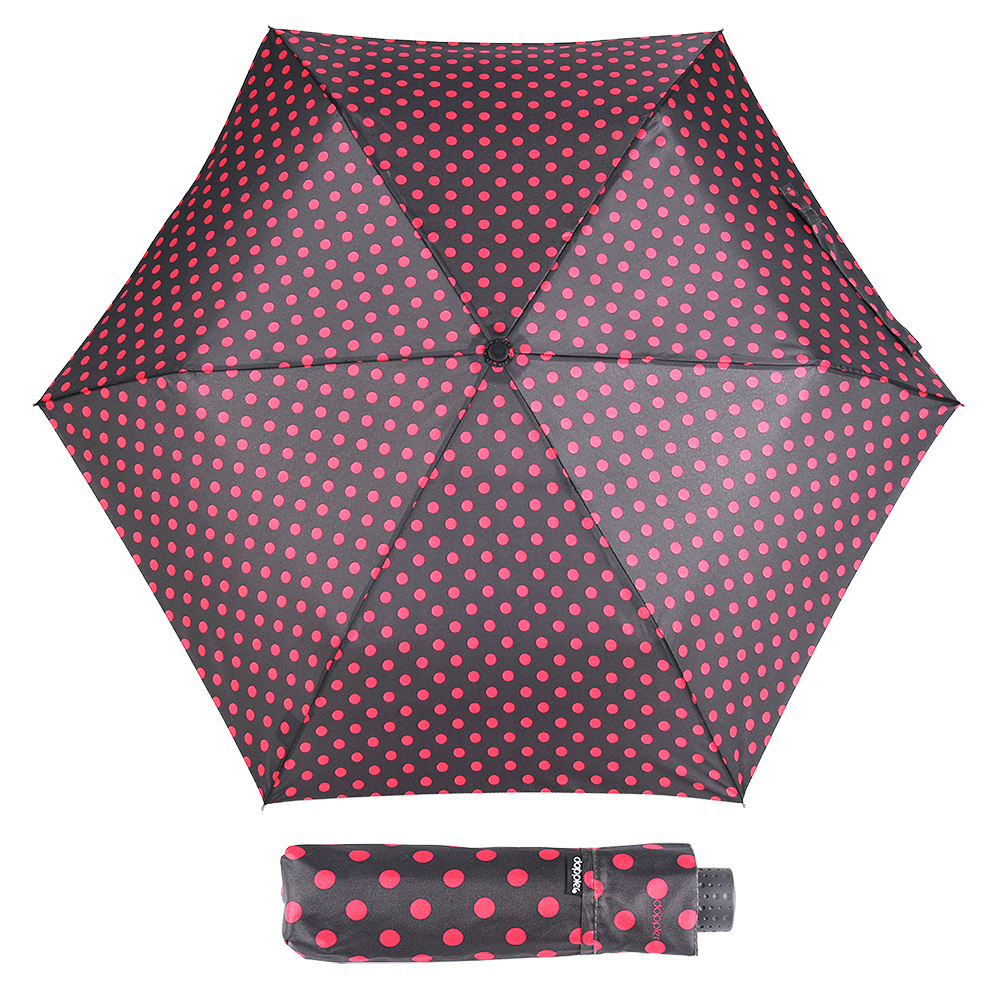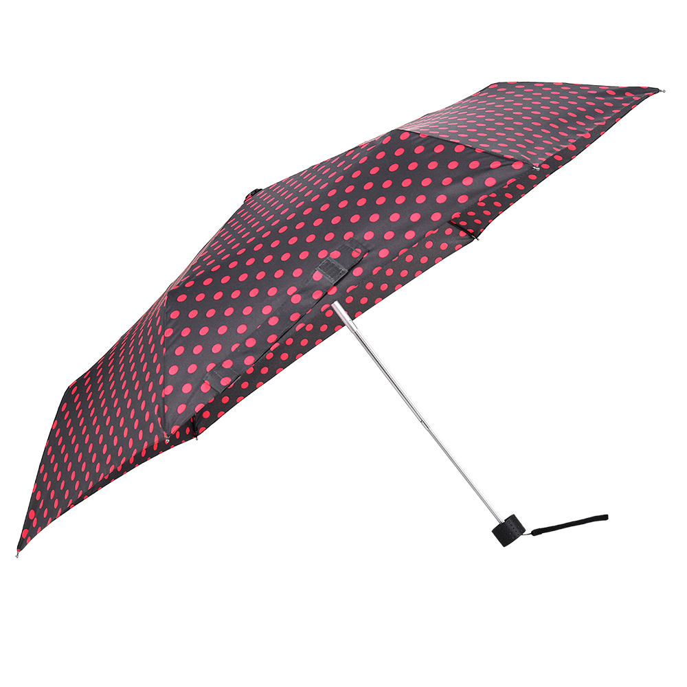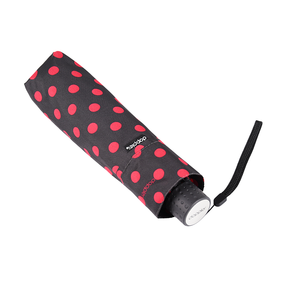 Ten parasol składany wyróżnia się niewielkimi wymiarami – po złożeniu ma zaledwie 23 cm długości, co sprawia, że bez trudu zmieści się w każdej torebce, plecaku lub walizce. Waga 140 g czyni go niezwykle lekkim i wygodnym w noszeniu. Dzięki ręcznemu mechanizmowi otwierania i zamykania, obsługa parasola jest prosta, szybka i niezawodna.