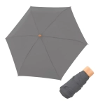 Ten składany parasol ECO wyróżnia się eleganckim designem oraz drewnianym uchwytem wykonanym z naturalnego drewna schima superba. Dzięki kompaktowym wymiarom – długość złożonego parasola wynosi jedynie 18 cm – bez problemu zmieści się w każdej torebce czy plecaku. Dołączone eleganckie etui chroni parasol, a jego materiał jest przyjemny w dotyku, odporny na wilgoć i temperaturę oraz nie ulega kurczeniu.
