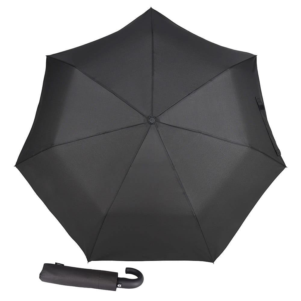 Prawdziwie męski mały oraz wytrzymały czarny parasol znanej marki Derby z oryginalnej linii AOC Hit Magic York.
