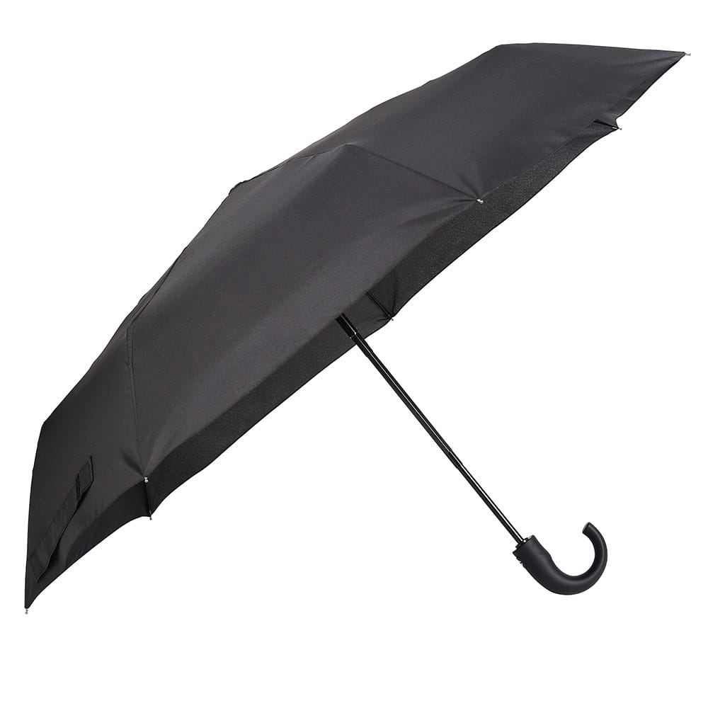 Parasol męski Derby z czarną klasyczną czaszą wykonaną z matowego, lekkiego i przyjemnego w dotyku poliestru typu pongee, który rozciąga się na stabilnej i mocnej konstrukcji z włókna szklanego i stali. Zastosowane materiały zapewniają trwałość oraz odporność na silne podmuchy wiatru. Tkanina poliestrowa typu pongee wysycha szybciej niż zwykły poliester oraz jest odporniejsza na zabrudzenia. Średnica czaszy wynosi 103 cm dzięki czemu ochroni bezproblemowo przed deszczem dwie osoby. Poszycie po złożeniu parasola zabezpieczysz paskiem spinanym na rzep.
