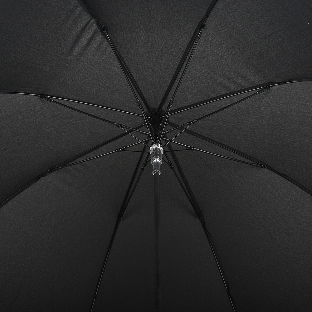 Materiał czaszy wykonany został z matowego, lekkiego i przyjemnego w dotyku poliestru typu pongee, który rozciąga się na stabilnej i mocnej konstrukcji. Rączka parasola wykonana została z wysokiej jakości drewna, na której znajduje się grawerowane logo producenta. Tkaninę po złożeniu parasola zabezpieczysz paskiem zapinanym na rzep. Tkanina poliestrowa typu pongee wysycha szybciej niż zwykły poliester, a także jest odporniejsza na zabrudzenia i uszkodzenia mechaniczne.