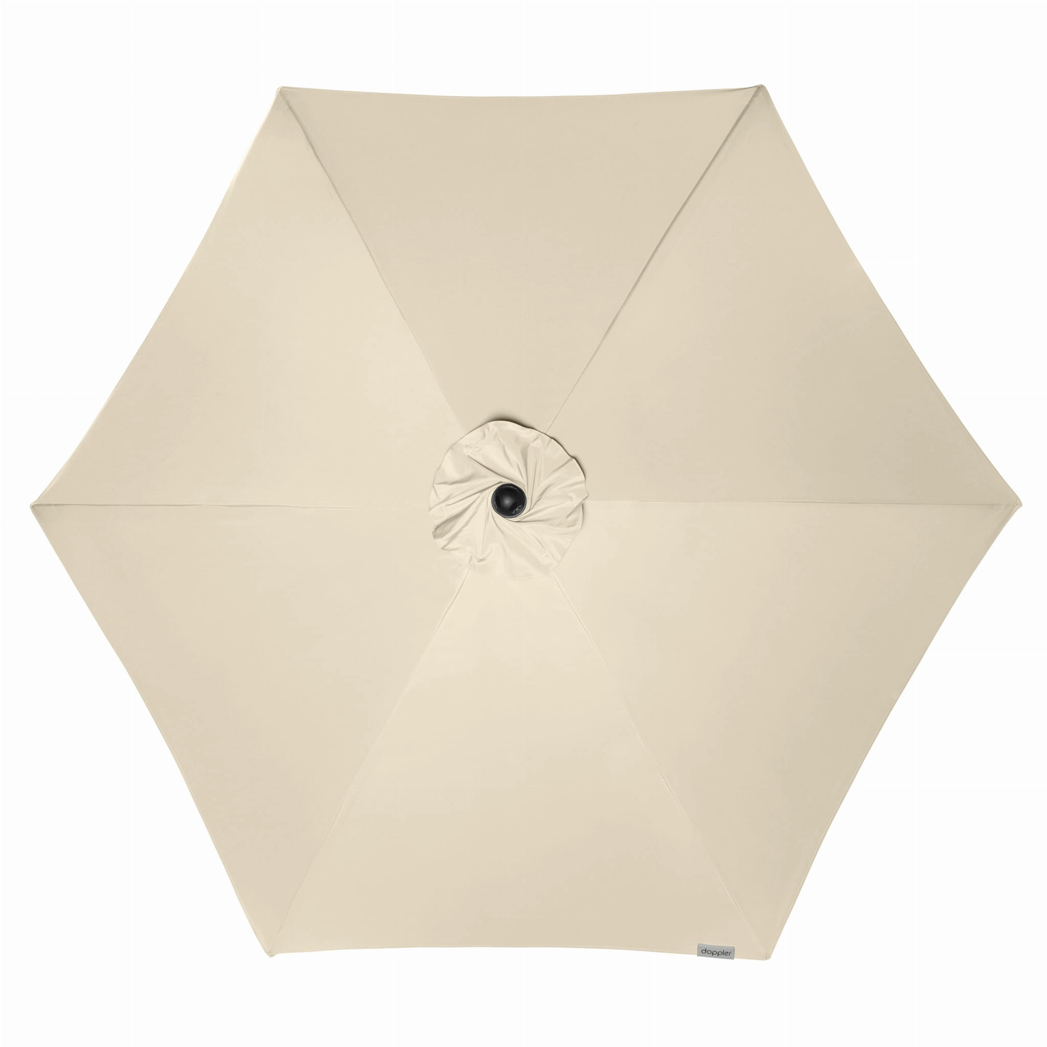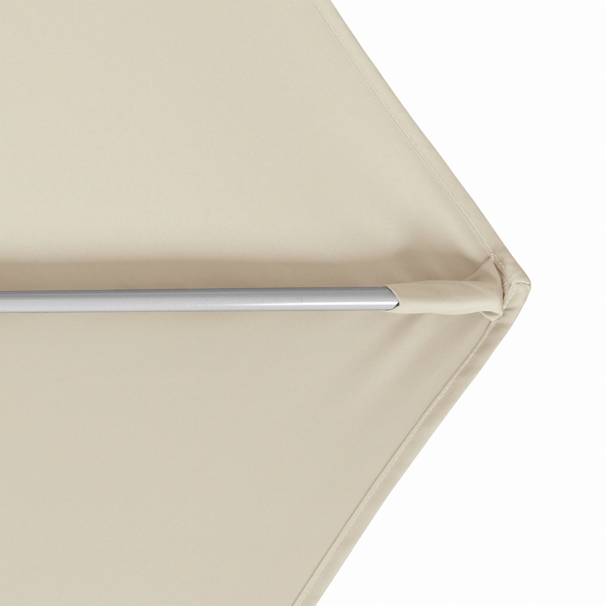 Wysokość parasola jest regulowana, możesz wydłużyć parasol o 15cm. Maksymalna wysokość parasola to 235 cm, a przestrzeń nad głową sięga do 195 cm. Materiał czaszy to wysokiej jakości poliester o gramaturze 180, który jest odporny na różne warunki atmosferyczne oraz blaknięcie. Dodatkowo poszycie można zdjąć i wyprać ręcznie w maksymalnie 40 stopniach. W dolnym odcinku maszt centralny ma średnicę 3,8 cm. Decydując się na ten parasol pamiętaj o dobrze dobranej podstawie. Sugerowane minimalna waga podstawy to 40 kg, przy takim obciążeniu parasol będzie stał stabilnie.