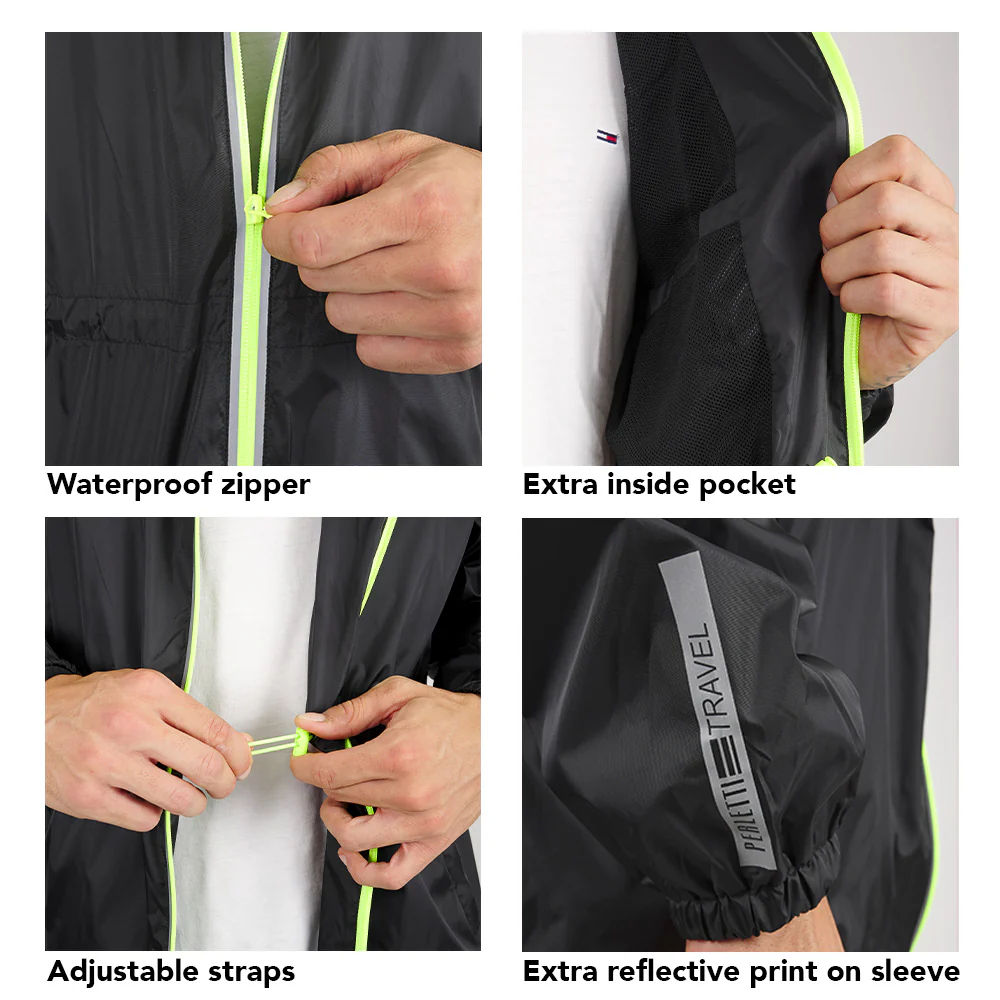 Odblaskowe detale sprawiają, że jesteś widoczny dla samochodów na drodze, a gdy zdecydujesz się na przerwę, możesz schować płaszcz do praktycznego kieszonkowego etui.
