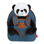 Denimowy plecak z uroczym i miękkim pluszakiem Pandą. Maskotkę można zdjąć i wykorzystać jako zabawkę, dzięki czemu będzie fantastycznym towarzyszem przygód dla Twojego dziecka, które zawsze będzie chciało nosić go ze sobą.