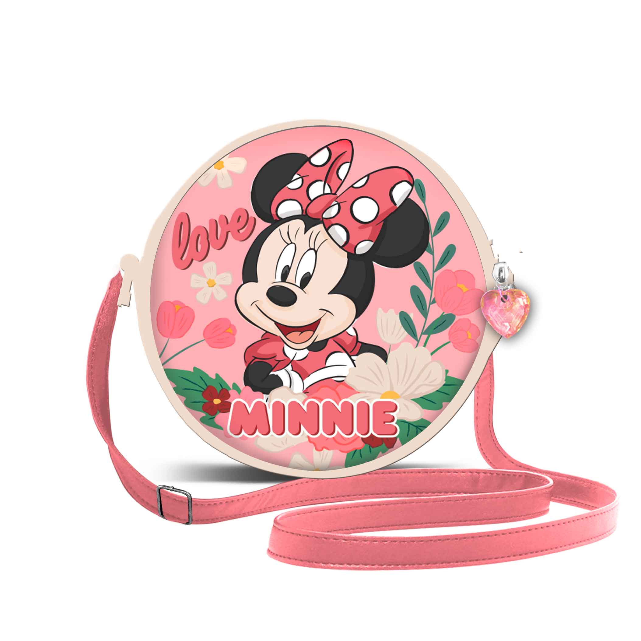 Usztywniona okrągła torebka na ramię z tłoczonym wzorem 3D na przodzie. Wyjątkowa grafika w żywej kolorystyce przedstawia Myszkę Minnie.